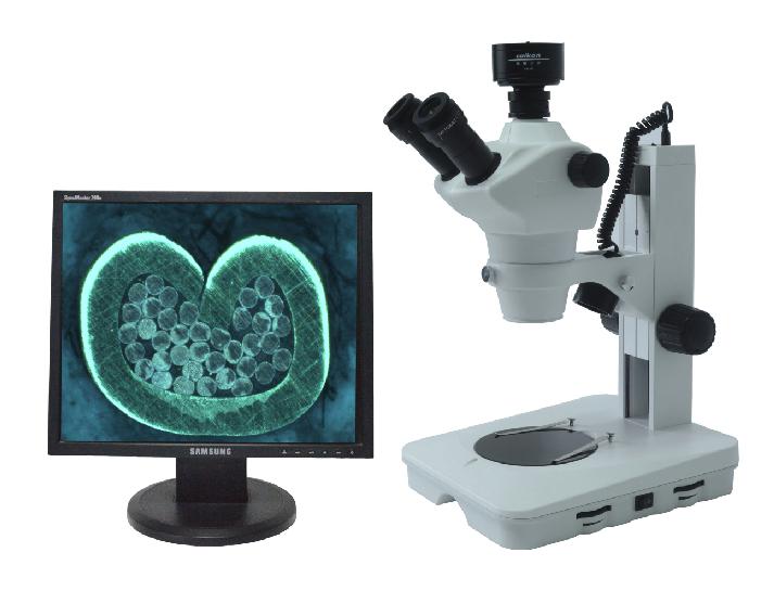 三目觀察筒,45°傾斜,可360°旋轉(zhuǎn);50%通光攝影